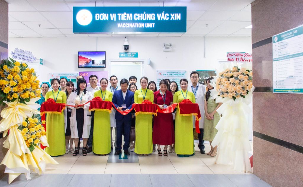 Hình 1. Ban Giám đốc Bệnh viện Nhân dân 115 cắt băng khánh thành Đơn vị Tiêm chủng vắc xin tại Tầng 2 Khu Chẩn đoán và Điều trị kỹ thuật cao