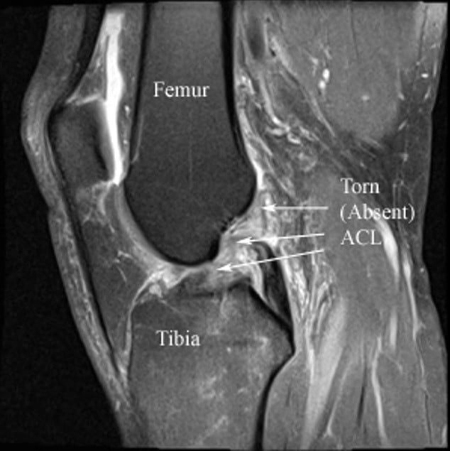 Hình 3: Hình ảnh MRI đứt dây chằng chéo trước