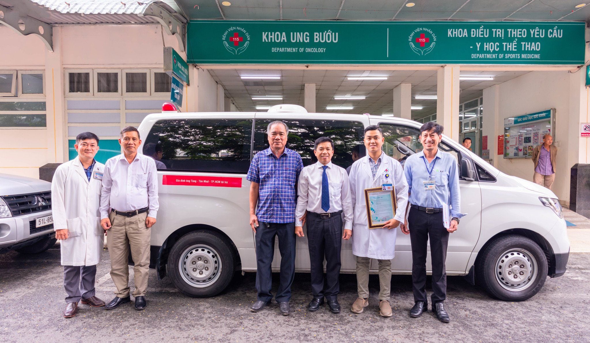 Chiều ngày 26/8/2025, tại Hội trường Trung tâm R&D, Bệnh viện Nhân dân 115 đã long trọng tổ chức Lễ tiếp nhận xe ô tô cứu thương do gia đình ông Nguyễn Thanh Tùng (xã Tân Nhựt, Thành phố Hồ Chí Minh) trao tặng.