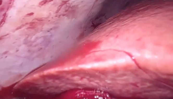 Bên cạnh việc truyền máu tích cực, việc tìm nguyên nhân chảy máu là một vấn đề cấp bách được đặt ra, nếu không bao nhiêu lượng máu hiếm quý như vàng lại tiếp tục chảy ra. Hình ảnh trên siêu âm cũng như chụp cắt lớp cho thấy dịch ổ bụng lượng nhiều, nghi ngờ có máu trong ổ bụng. Người bệnh sau đó được nhanh chóng chuyển lên phòng mổ kèm theo hệ thống ECMO để can thiệp nội soi ổ bụng cấp cứu dưới sự thực hiện của BS. CKII Phan Lương Huy khoa Ngoại tổng quát. Nhờ sự can thiệp kịp thời và chính xác, ổ chảy máu được xác định nằm ở phân thùy VI của gan nhanh chóng được can thiệp đốt cầm máu, ca phẫu thuật bước đầu đã thành công.