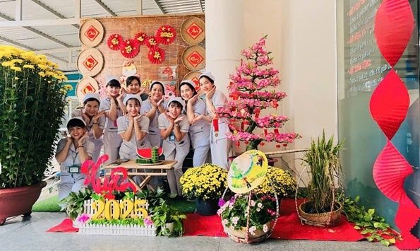 Hình 4: Khoảnh khắc mùa xuân tươi vui của các điều dưỡng tại góc Tết bệnh viện