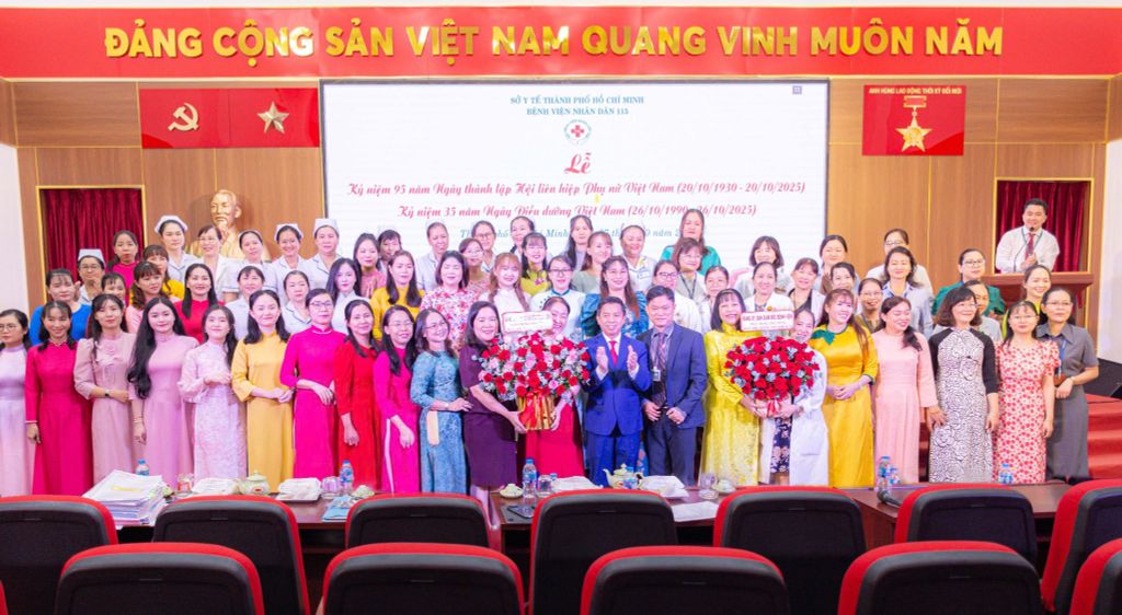 Sáng ngày 17/10/2025, tại Hội trường thuộc Khu Chẩn đoán và Điều trị Kỹ thuật cao, Bệnh viện Nhân dân 115 tổ chức Lễ kỷ niệm 95 năm Ngày Thành lập Hội Liên hiệp Phụ nữ Việt Nam (20/10/1930 – 20/10/2025) và kỷ niệm 35 năm Ngày Điều dưỡng Việt Nam (26/10/1990 – 26/10/2025). Chương trình thể hiện tinh thần tri ân và ghi nhận những đóng góp quan trọng của viên chức, người lao động nữ trong các giai đoạn phát triển của Bệnh viện.
